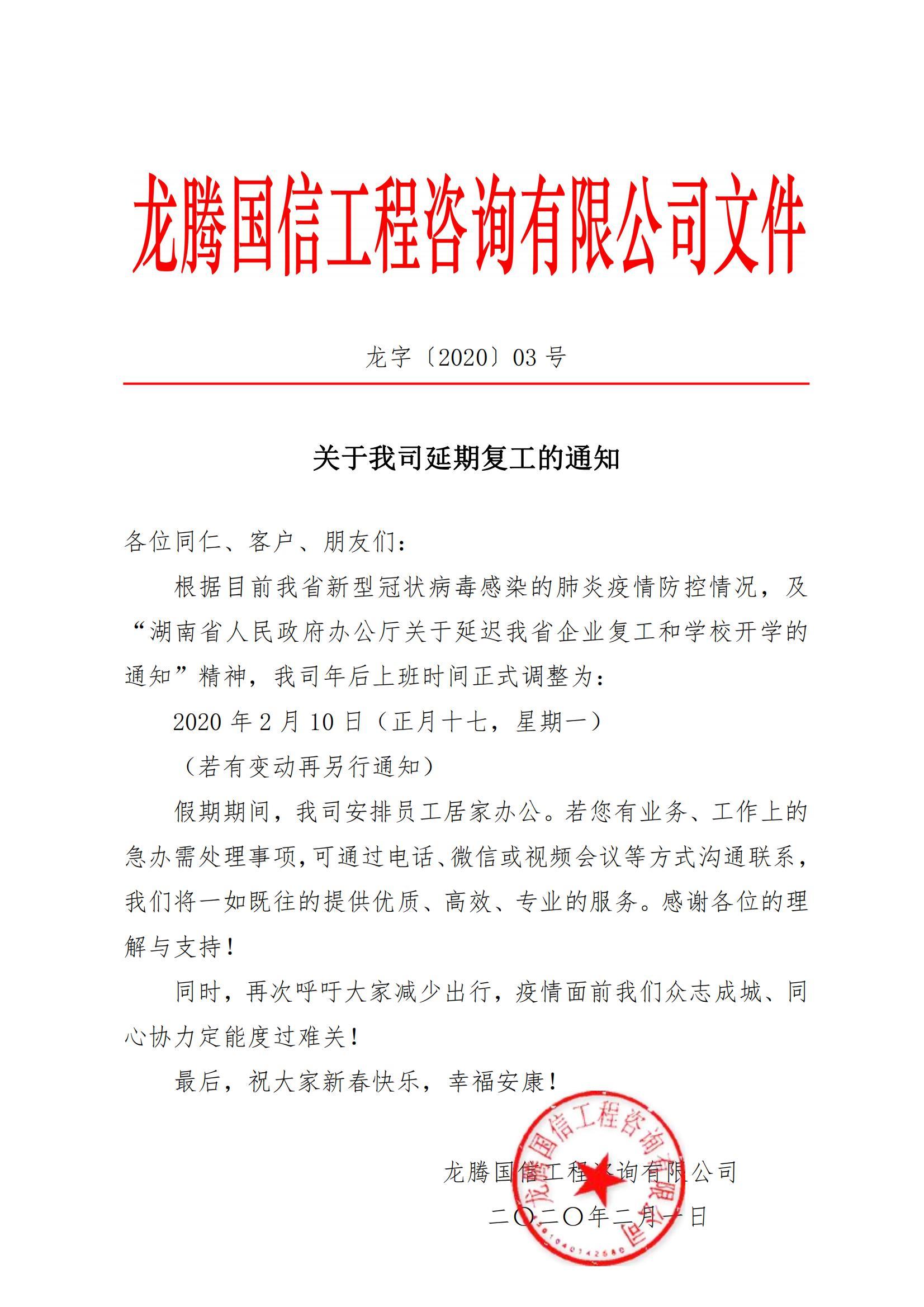 關于我司延期復工的通知