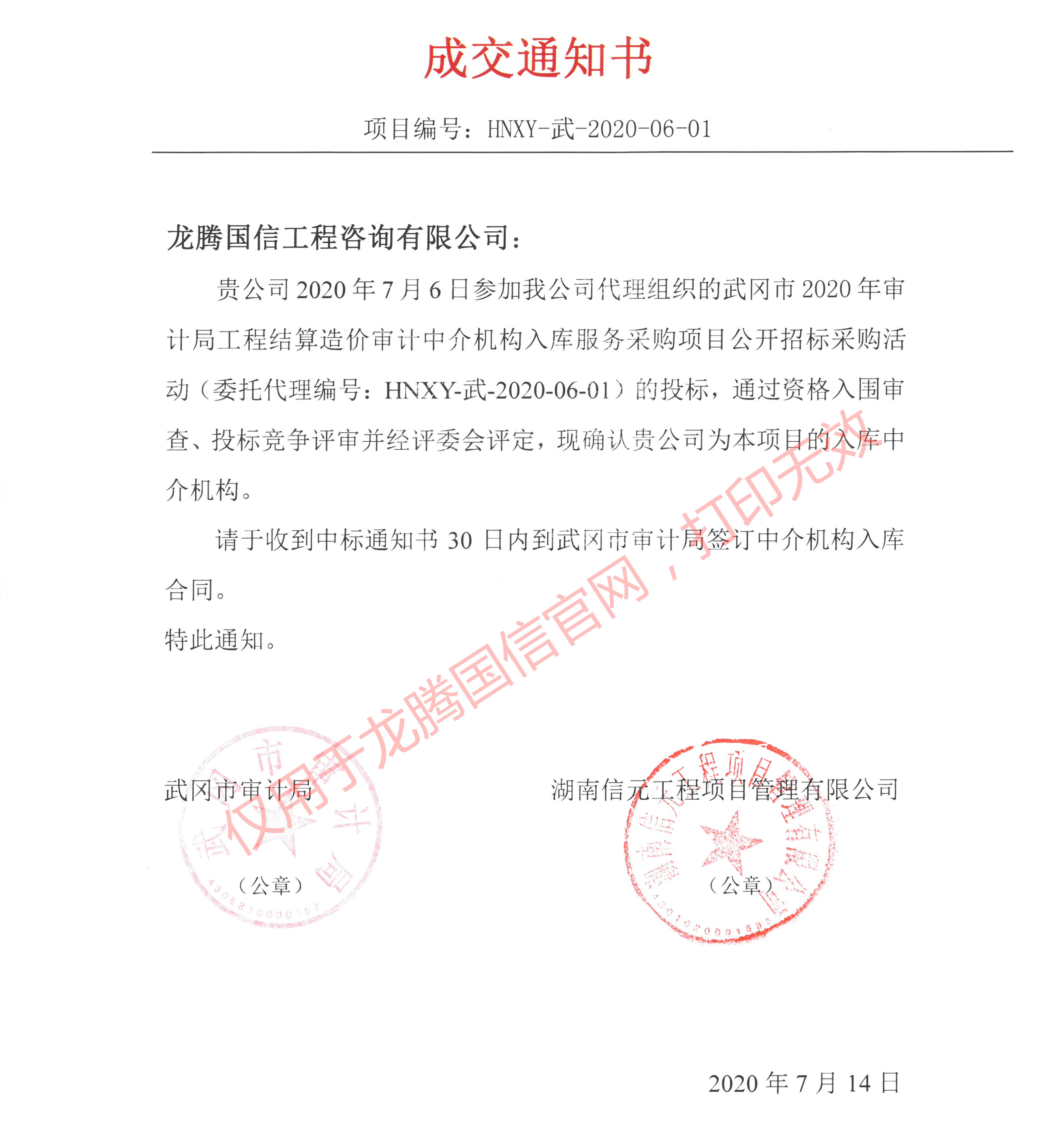 恭賀本公司中標武岡市審計局工程結算造價審計中介機構庫