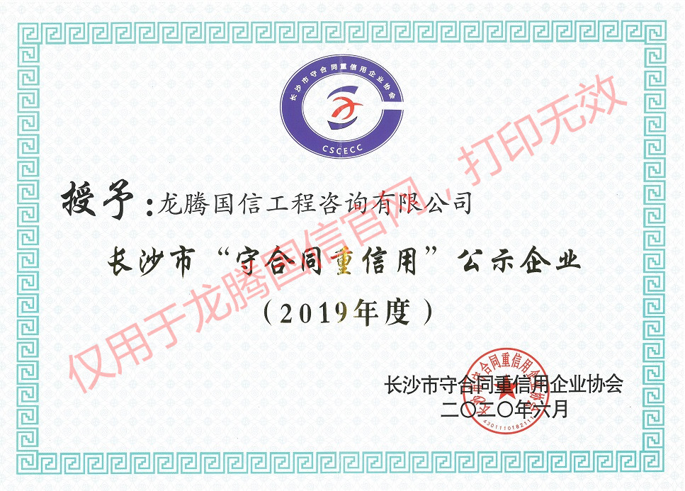恭賀我公司榮獲湖南省和長沙市2019年度守合同重信用單位榮譽(yù)