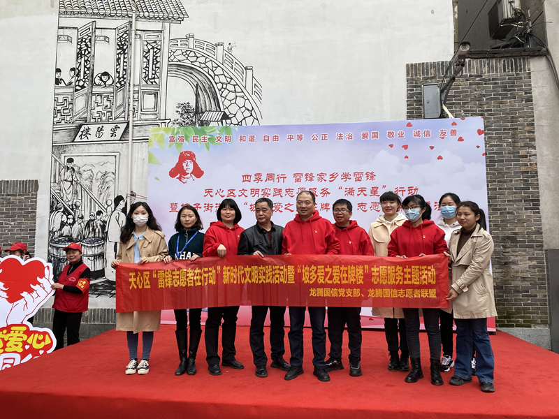 龍騰國信黨支部、龍騰國信志愿者聯(lián)盟今日在長沙市天心區(qū)坡子街街道西牌樓社區(qū)百年老巷胥樂園前坪,作為協(xié)辦單位,舉行了《天心區(qū)文明實踐志愿服務(wù)“滿天星”行動暨坡子街街道“坡多愛之愛在牌樓”志愿服務(wù)主題活動》。