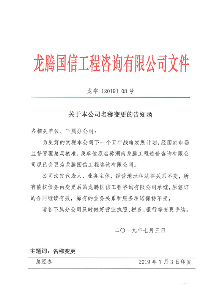 關(guān)于本公司名稱(chēng)變更的告知函