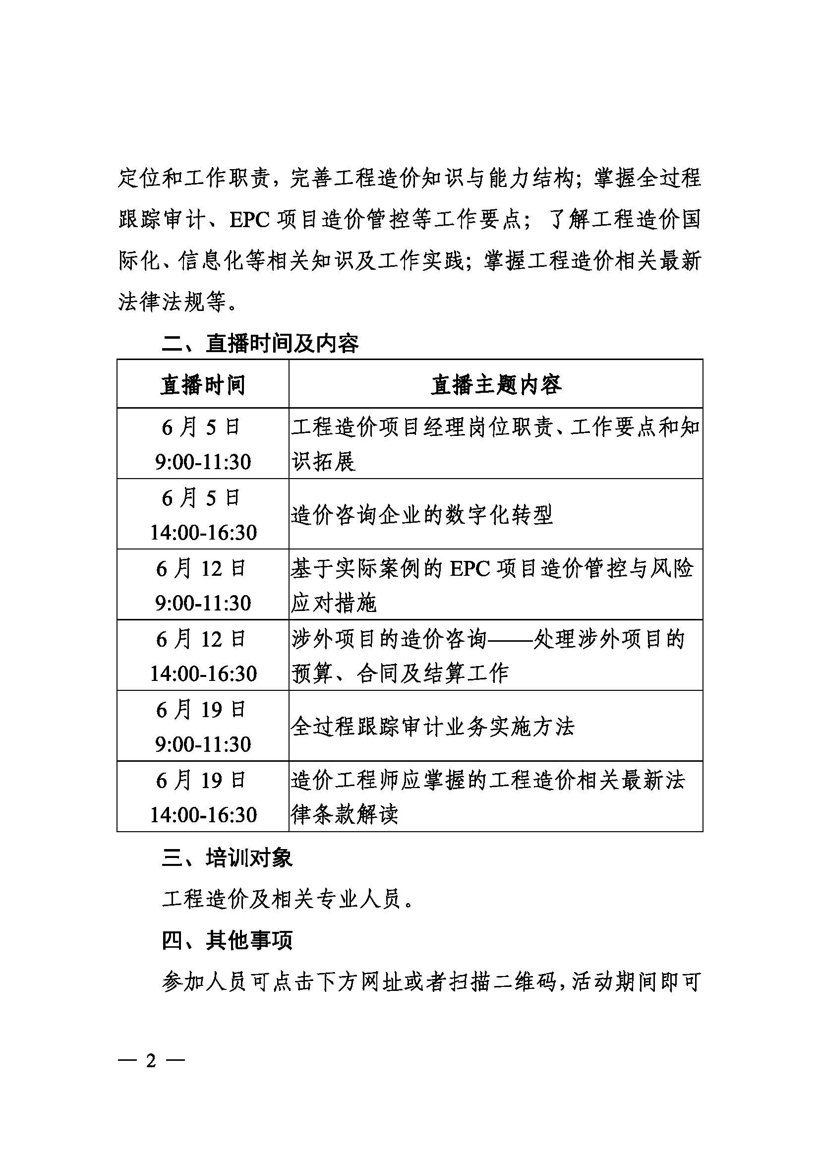 轉(zhuǎn)發(fā)中國建設(shè)工程造價(jià)管理協(xié)會(huì)關(guān)于舉辦工程造價(jià)咨詢企業(yè)項(xiàng)目經(jīng)理免費(fèi)網(wǎng)絡(luò)直播培訓(xùn)的通知